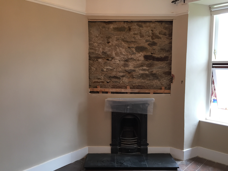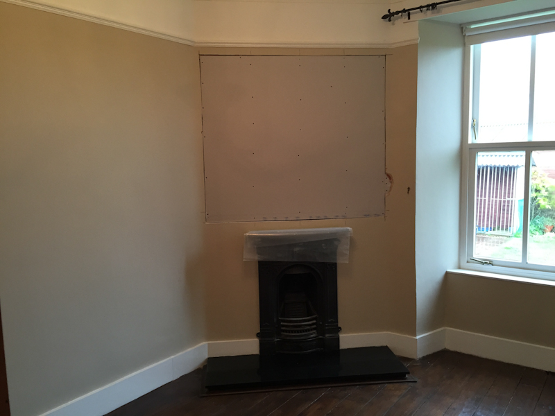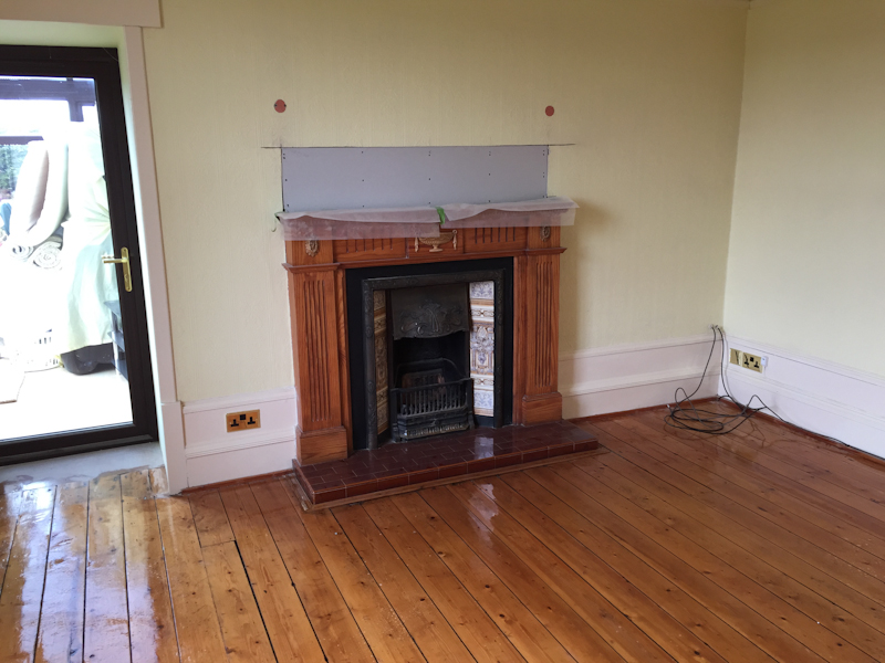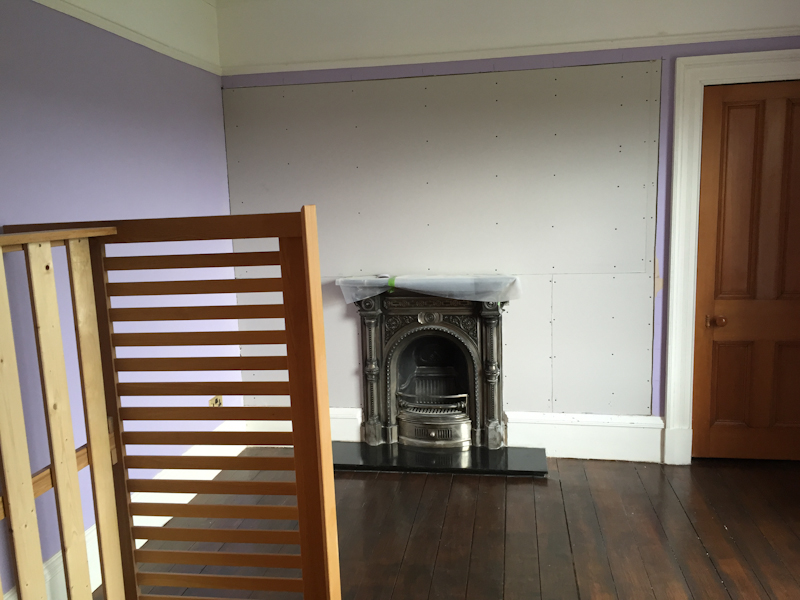 Area around fireplace showing plasterboard